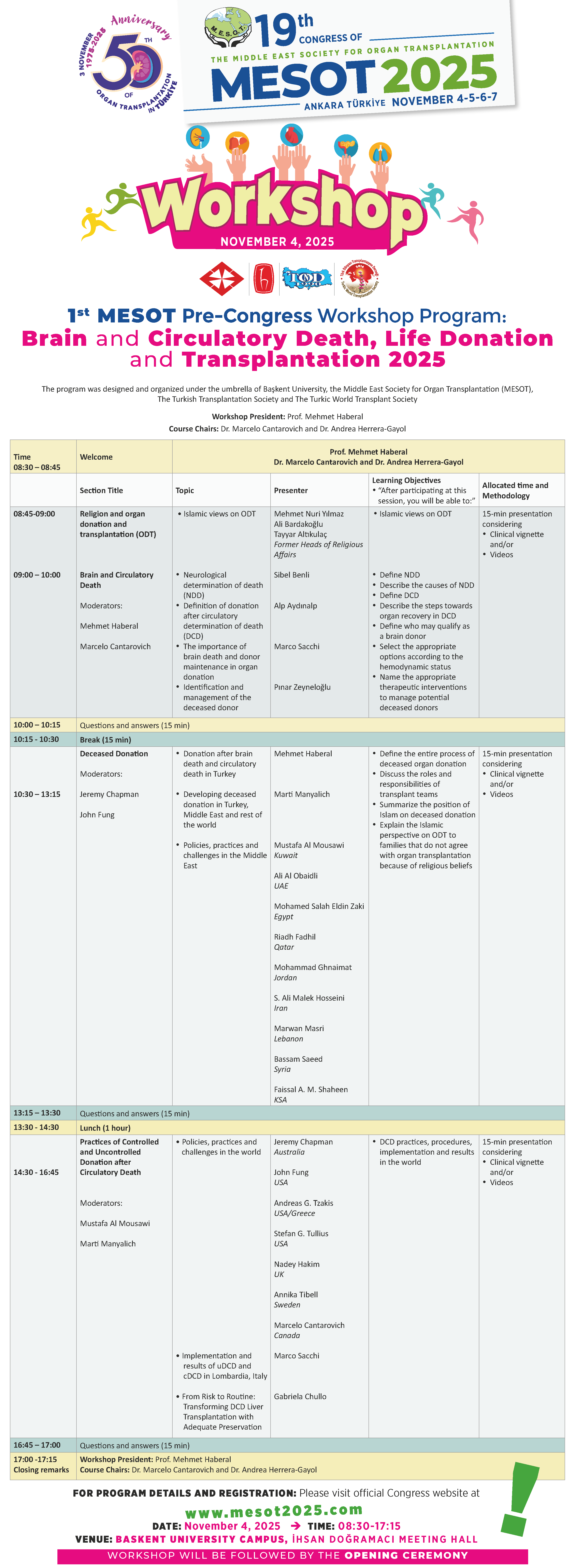 Workshop President: Mehmet Haberal